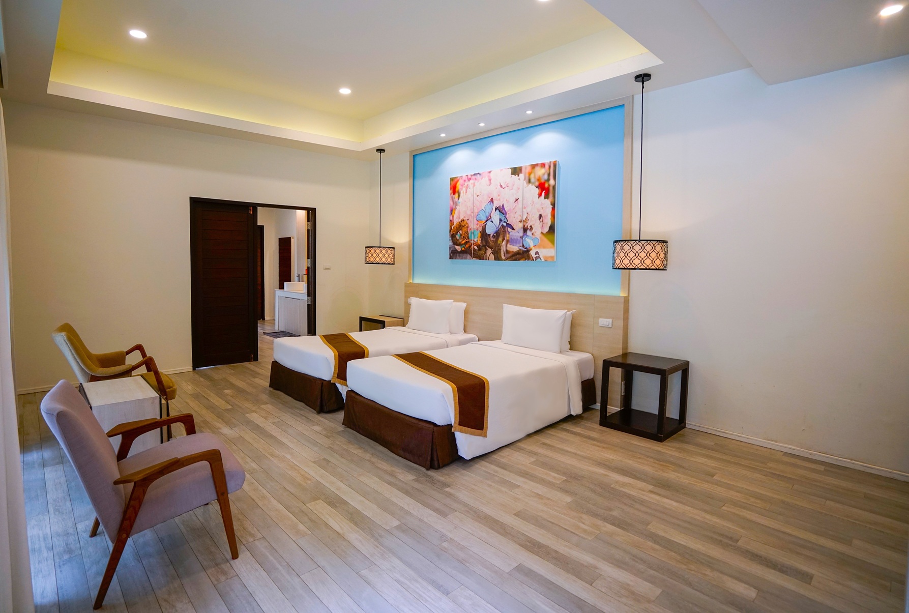 Add a sense of relaxation when relaxing in a separate, private Villa in a triangle. With a ceiling height of 6 meters, you won’t feel suffocating. It also separates the living room. with a private balcony to receive the warm sunlight in the morning and beautiful aesthetics from streams and lush forests.